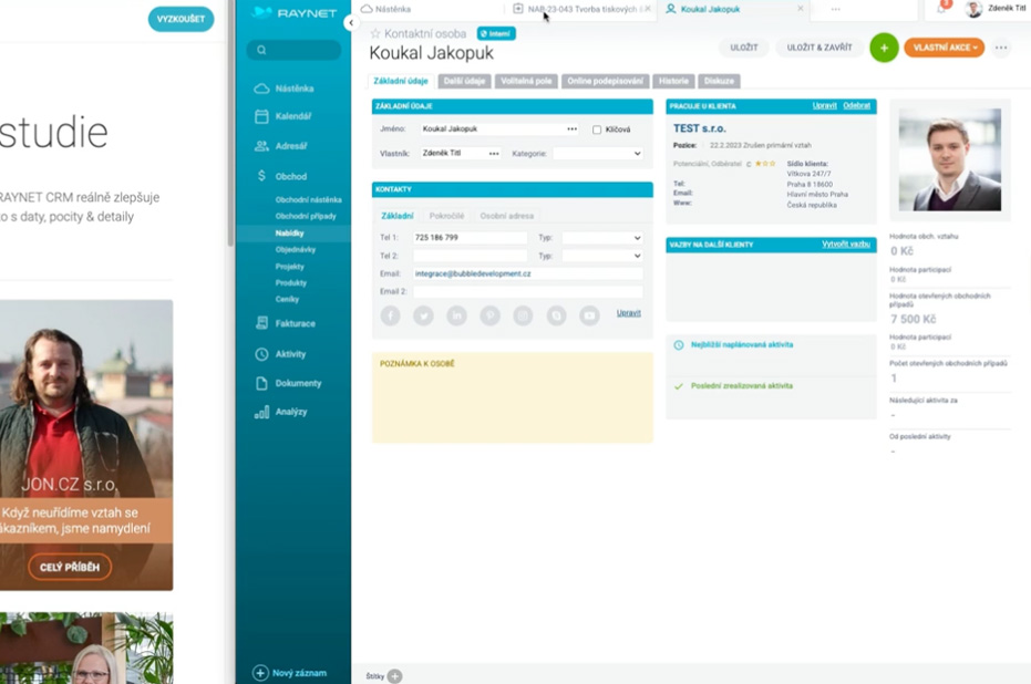 RAYNET CRM je funkčně ohraničený software jehož vývoj se nerealizuje na míru, ale obecně pro více než 16 tisíc uživatelů. Díky otevřenému datovému rozhraní – REST API, je však datově integrovatelný s většinou moderních aplikací. Integrace lze v dnešní době dělat rychleji a levněji pomocí no-code platforem. My konkrétně projekty realizujeme přes Make.com.